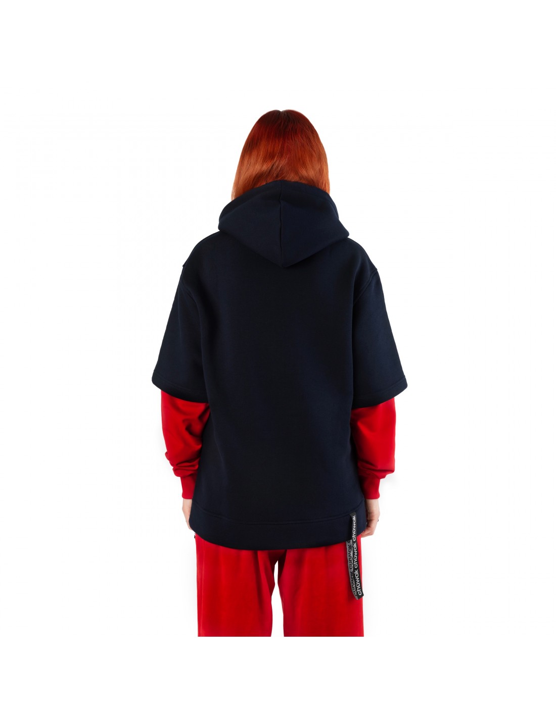 Chuwak Doppelter Ärmel Kapuzenpullover Blau-Rot