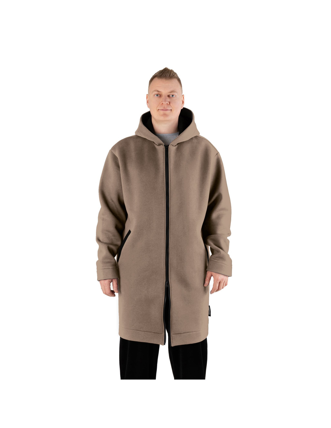2.COZY Langer Kapuzenpullover mit Reißverschluss Cappuccino